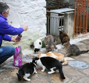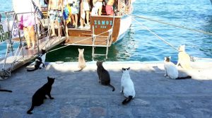In den Monaten Mai bis Oktober ist Samos voller Besucher und Touristen und viele Urlauber kann man mit großen Säcken Katzenfutter sehen! Alle lokalen Betriebe und Tavernen sind offen und für die Straßenkatzen ist es leichter, Futter und Wasser zu bekommen. Viele Griechen, die hier ihre Ferienhäuser haben, füttern ebenfalls Katzen.